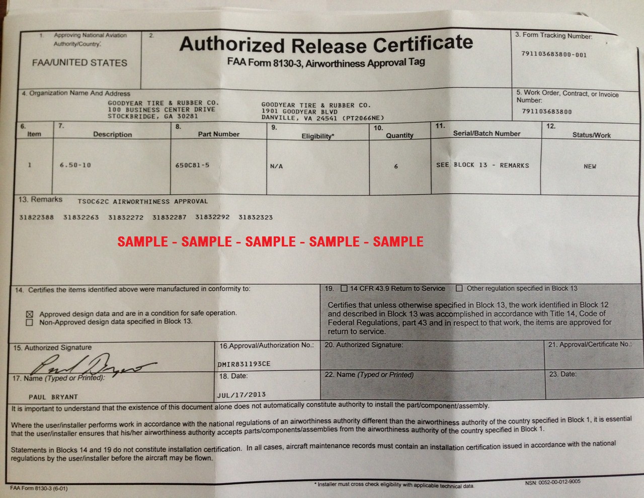 Todo nosso material chega até o cliente acompanhado do respectivo documento de autorização (FAA FORM 8130-3) homologado pela Administração Federal de Aviação ( Federal Aviation Administration - FAA) , entidade governamental dos Estados Unidos responsável pelos regulamentos e todos os aspectos da aviação civil nos Estados Unidos.